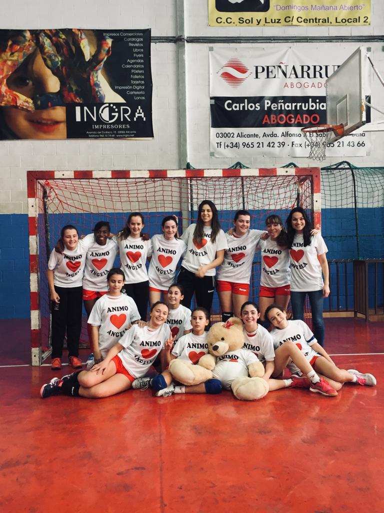 Las jugadores del equipo y sus entrenadoras, Nuria Corbí, Marina Corbí y Andrea Giner, quieren dedicar este partido a Ángela Martínez, jugadora convaleciente de una operación.