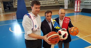 Los presidentes del Hércules, Carlos Parodi, HLA Alicante, Toni Gallego, y de Agustinos, Israel González,…