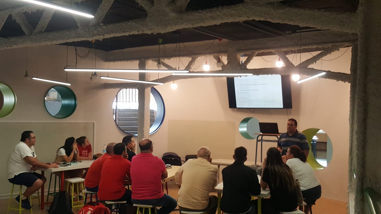 El entrenador de @cbm_elche @RocamoraJoaquin impartió, en el salón de actos, una charla formativa sobre «sistemas defensivos» especialmente orientado a categorías de formación.