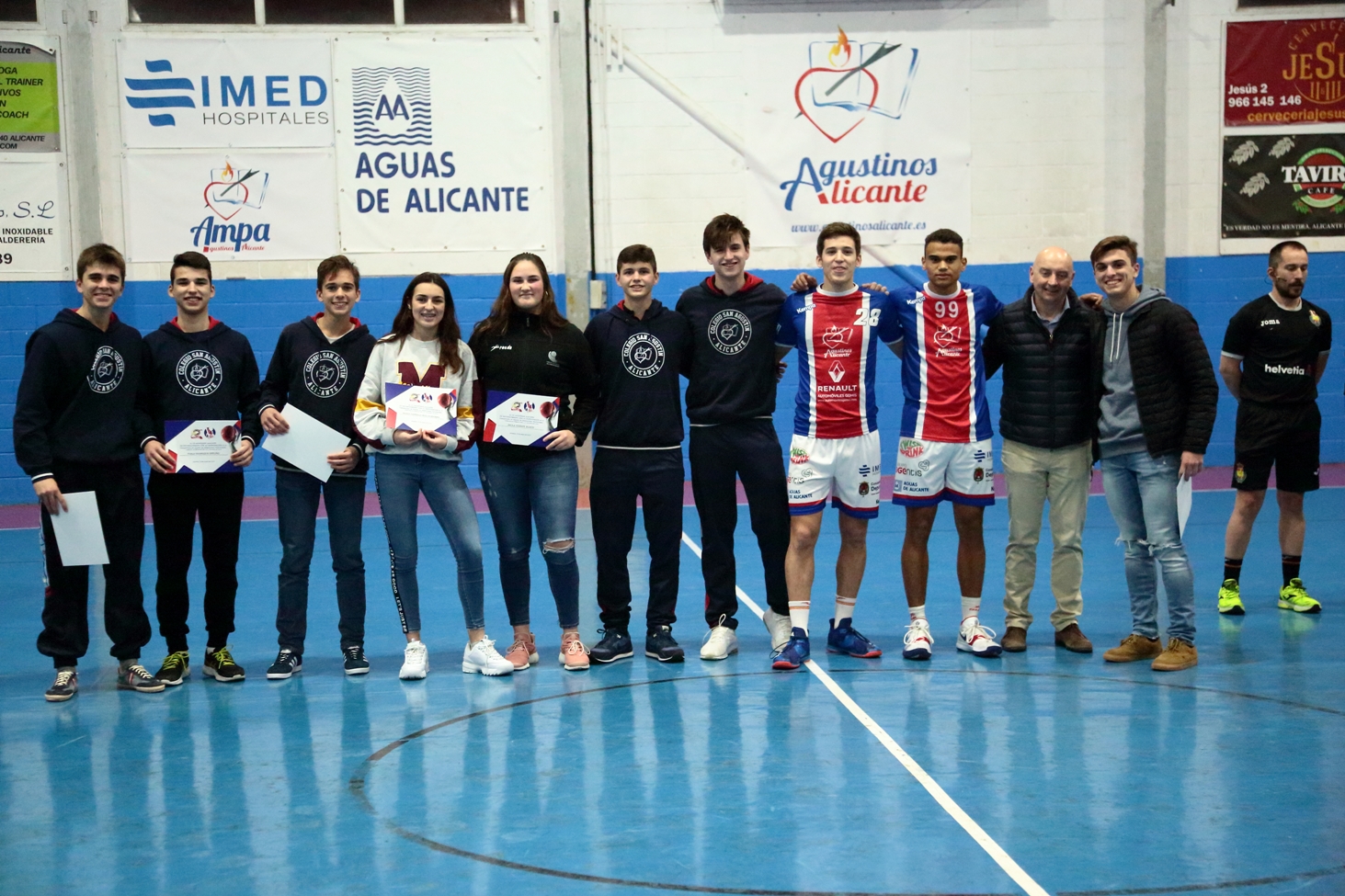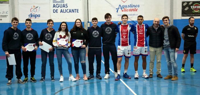 Los jugadores de la cantera de Agustinos que participaron en el CESA 2019 de Valladolid fueron homenajeados antes del encuentro que disputó el equipo masculino de DHPLATA ante Amenábar Zarautz.