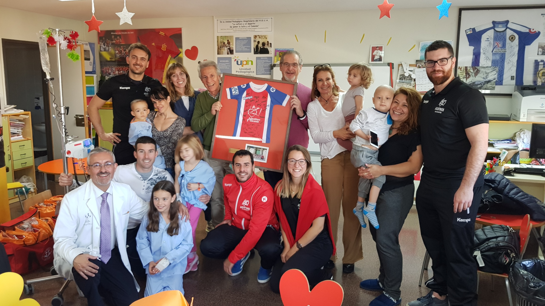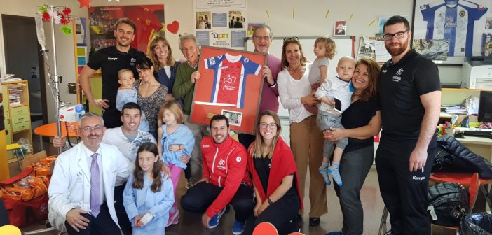 Una representación de jugadores, entrenadores y directivos visitó a los niños ingresados en la planta de Oncología del Hospital General Universitario de Alicante para entregarles diversos juguetes.